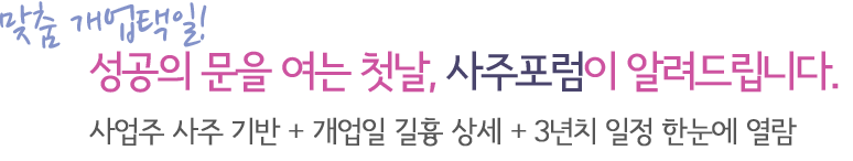 사주포럼 개업택일과 함께, 여러분의 새로운 개업일을 가장 좋은 날로 열어 보세요.